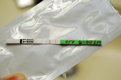 I tested ovulation today and it was a pretty clear negative. I'll test again tomorrow morning if I can get the "tools" into the community work bathroom (kind of embarrassing.) Maybe I'll just pee in a ziplock bag and throw it away in the sanitary baskets after I'm done. I'll come up with something not gross.